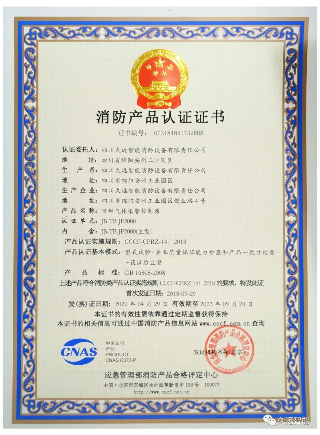 2018年6月25日消防产品合格评定中心针对电气火灾监控系统与可燃气体报警产品发布了新的认证实施规则。产品认证的基本模式为:型式试验+企业质量保证能力检查和产品一致性检查+获证后监督。必要时,企业质量保证能力检查(产品一致性检查)可与型式试验一并进行。