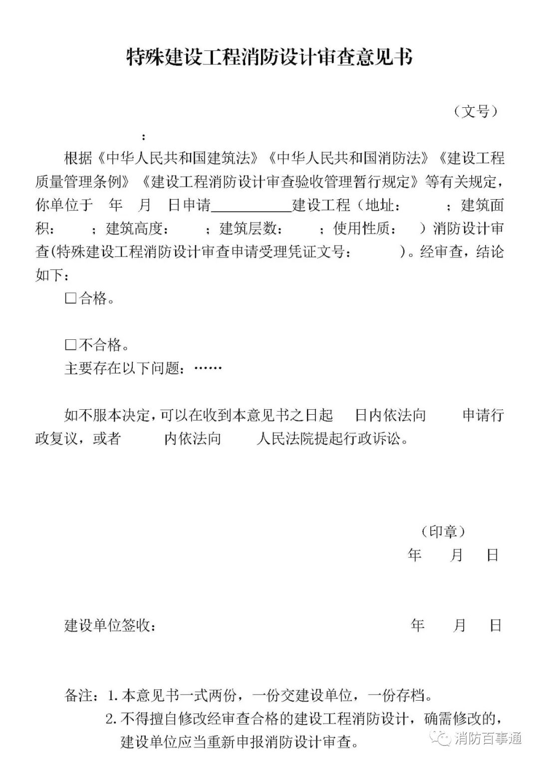2、建设工程消防设计审查、消防验收、备案和抽查文书式样